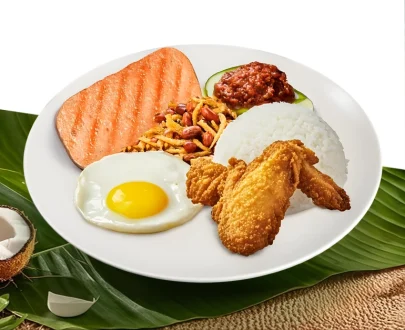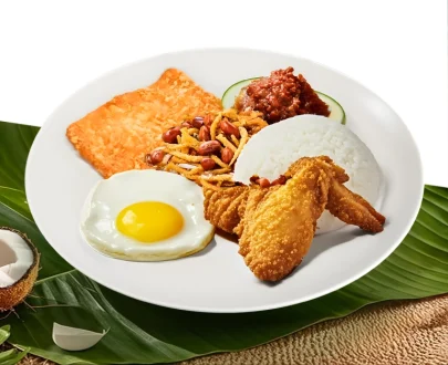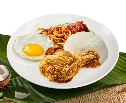 Selected Basmati rice is full of coconut fragrance and tastes sweet. The fried chicken has a thin and crispy skin and the chicken is tender and juicy.