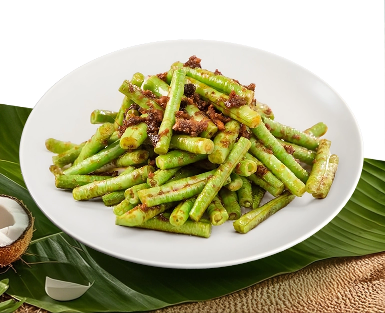 Stir-fried long beans are delightfully crispy-tender, offering a fresh, subtly sweet flavor enhanced by a savory touch from cooking.