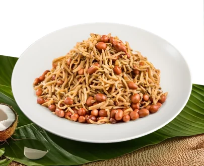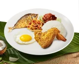 Coconut Fragance Rice Sunny Side Up Egg Fried Anchovies w/Peanut Fried Signature Drumstick Fried Sambal and Cucumber